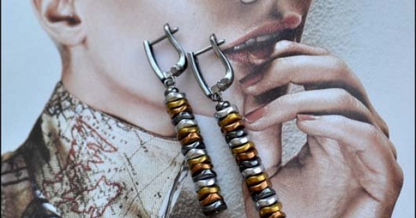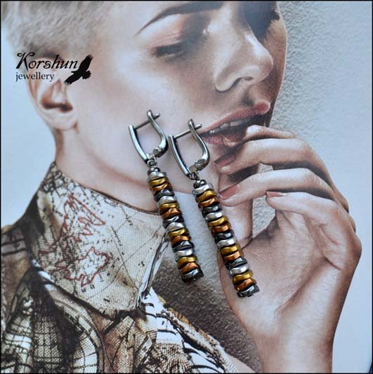 Оригинальные мультицветные серьги из гематита. Еще одно украшение в стиле hi-tech добавляе..