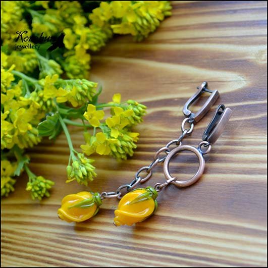 Очаровательные серьги со стеклянными бусинами lampwork ручной работы. Названием послужил сорт роскош..