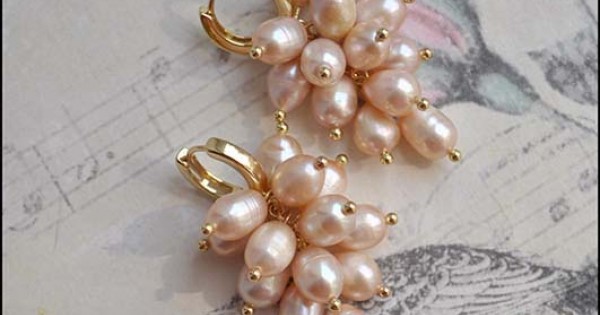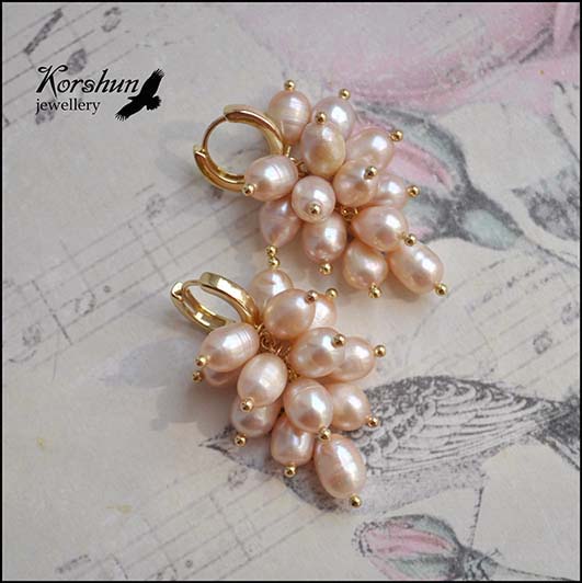 Нежные серьги-грозди из натурального жемчуга персикового цвета. Некрупное и очень женственное украше..
