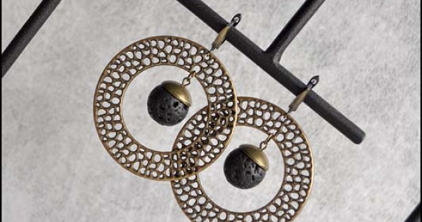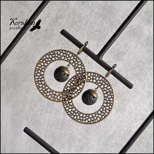 Крупные этнические серьги с филигранными кольцами и вулканической лавой. Захватывающее зрелище - взг..