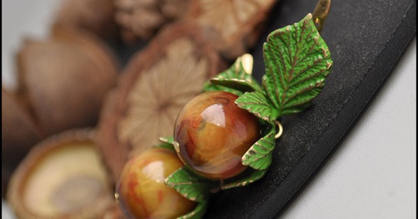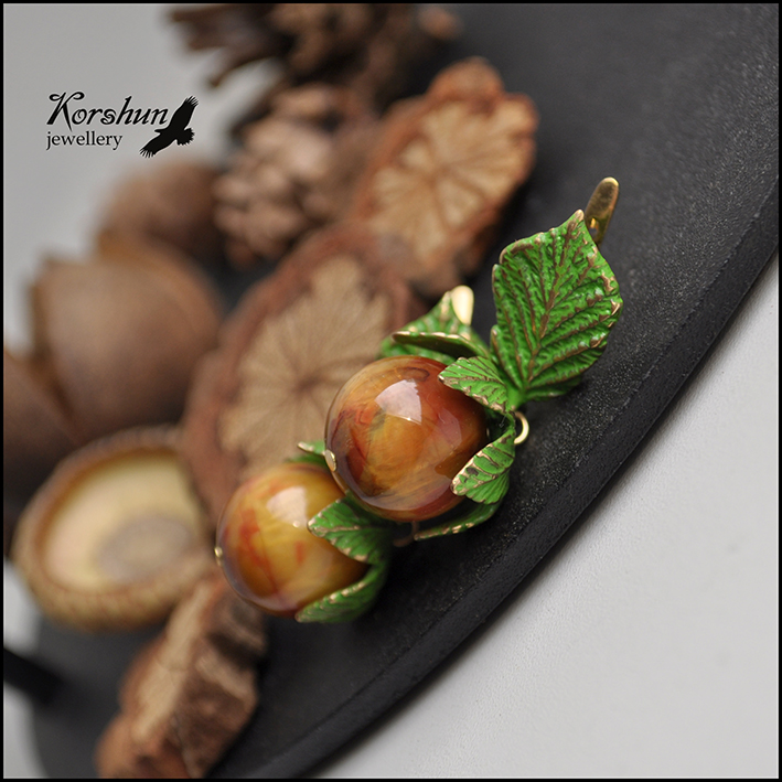 Очаровательные серьги в стиле гоблинкор, в виде плодов орешника с удивительным огненным непальским п..