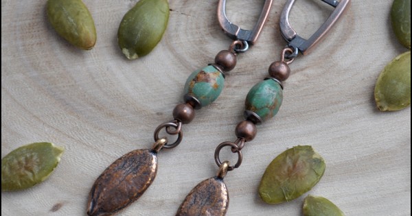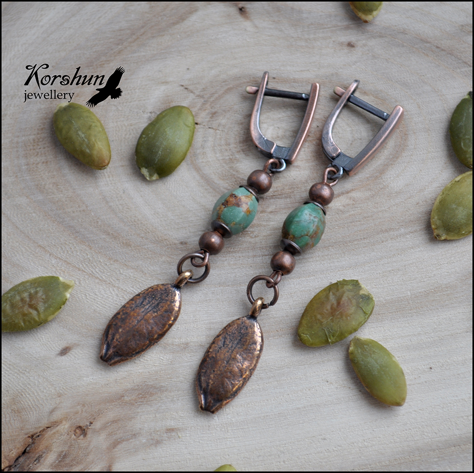 Очаровательные серьги из казахстанской бирюзы и подвесок ручной работы в виде семечек. Легкое милое ..