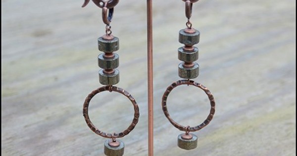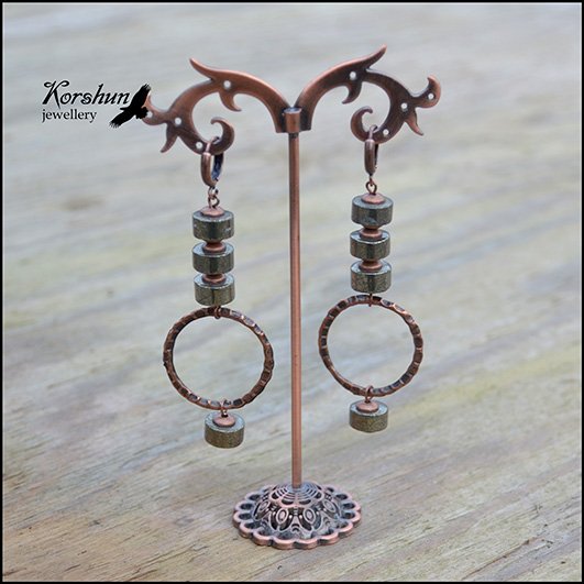 Оригинальные серьги из пирита. Давно хотела поработать в смешении двух металлов, но, все в руки не ш..