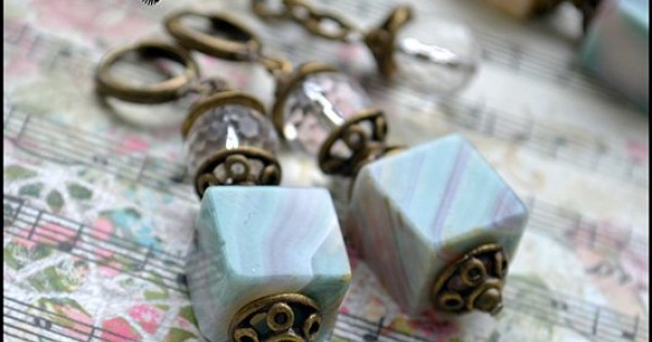 Серьги из рубленого агата и хрусталя. Бусины оригинальной кубической формы напоминают россыпи сладко..