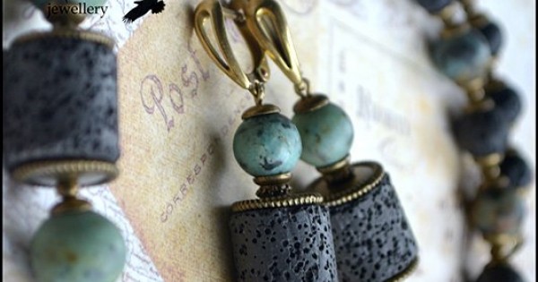 Серьги из матовой бирюзы и лавы. Когда взяла в руки эти камни, мне сразу вспомнились великолепн..