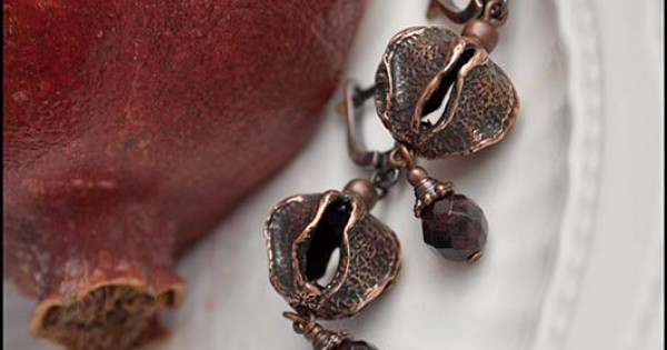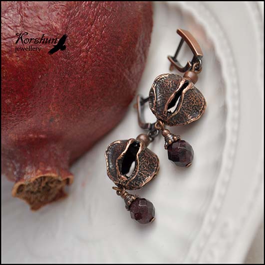 Интересные серьги с фурнитурой ручной работы и гранатами. Спелые экзотические плоды истекающие ..