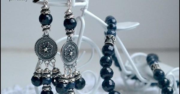 Шикарные серьги с сапфирами. Черно-синий цвет камня хорошо сочетается с цветочным орнаментом на сере..