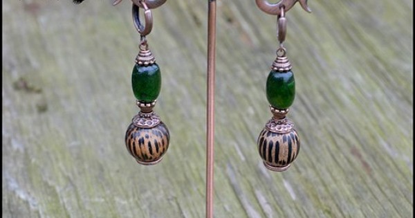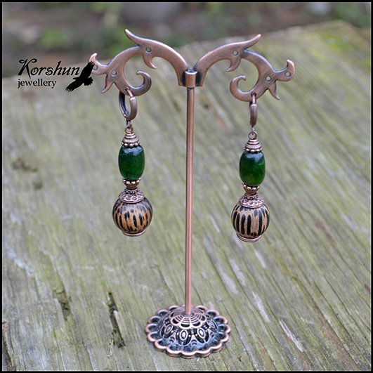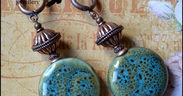 Интересные серьги в этническом стиле с медными и керамическими бусинами ручной работы. Необычные&nbs..