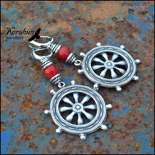 Крупные серьги с красными кораллами. Страстный красный, и холодный серебристый - стильное сочетание...