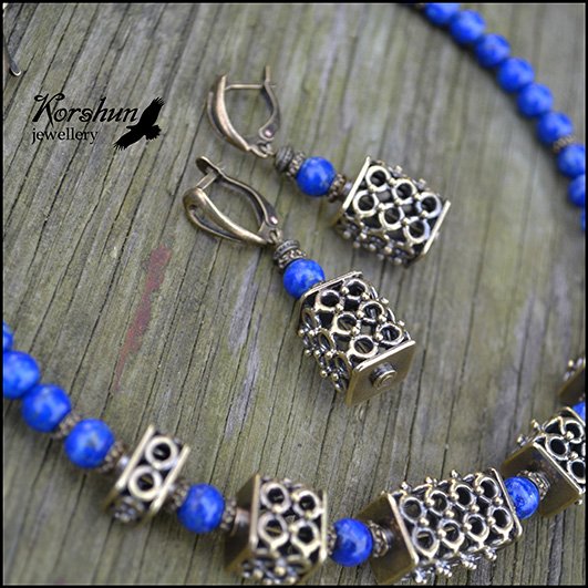 Восхитительные серьги с лазуритом. Ажурные бусины ручной работы замечательного ювелира из Санкт-Пете..