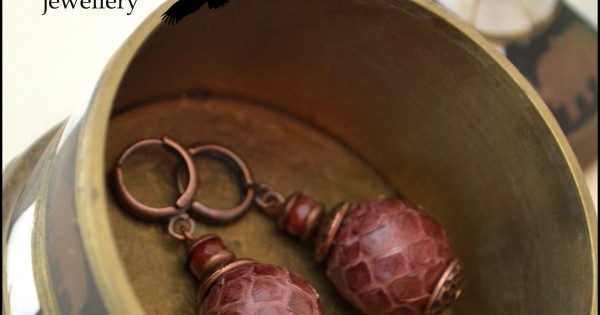Серьги из натуральной кожи змеи. Бусины не покрыты акрилом, и вы можете почувствовать всю текст..