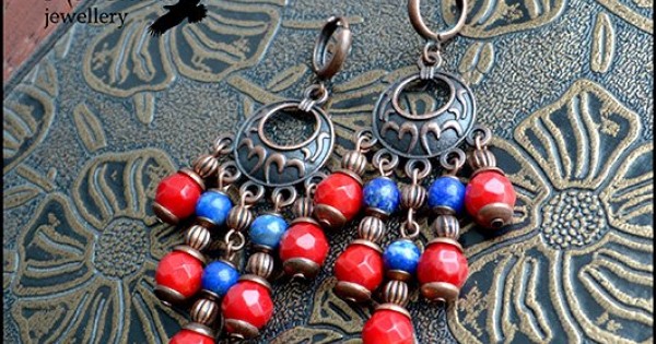 Восточные серьги с натуральными кораллом и лазуритом. Романтичные и яркие для&nb..