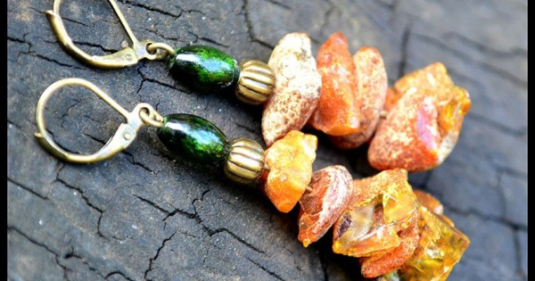 Серьги Дикарка. Дикий балтийский янтарь, прекрасный в своей природной натуральности, и коралл, фанта..
