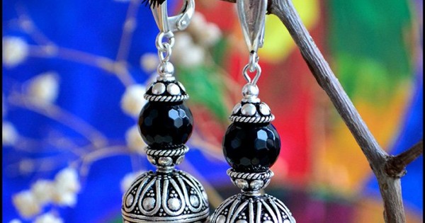 Серьги "Шахерезада". Красивые крупные серьги с черным обсидианом. Большие серебряные бусины с восточ..